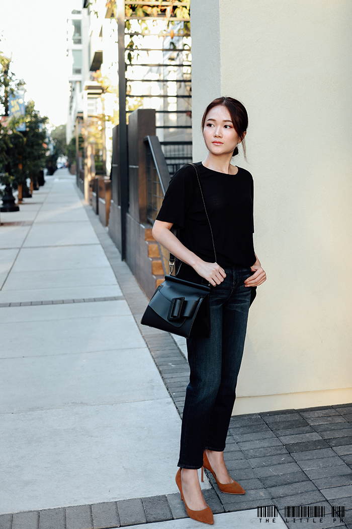 1. 最常见的open back是从背部最上方直直切下来,是最能展示背部线条的一种。我身上这件即是如此,在尾端加上一条系带之后便加强了安全感,这样稍拢住被切开的左右两端就不会在有大风吹起时整件T往前翻“春光大现”了。